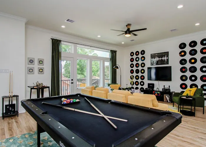 **Nestled just 20 km from William P. Hobby Airport and a mere 3 km from Ensemble/HCC, this location offers easy access for travelers. The convenience of downtown Houston, with its vibrant nightlife, cultural attractions, and shopping, lies just a short drive away. Experience the perfect fusion of leisure and excitement at the 3Bd-Rooftop Movie Theater, where retro vibes meet modern city life.**